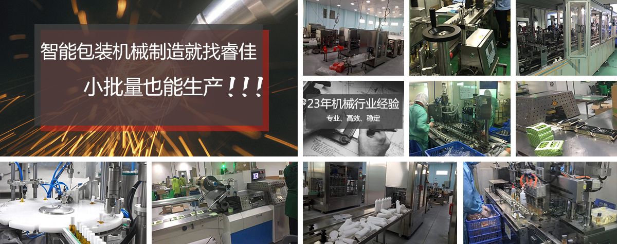 廣州市睿佳機(jī)械設(shè)備有限公司是國內(nèi)專業(yè)從事自動化包裝機(jī)械產(chǎn)品,集研發(fā)、生產(chǎn)、銷售、服務(wù)于一體的制造公司,已通過ISO9001:2008質(zhì)量體系認(rèn)證,部分系列產(chǎn)品已通過歐盟CE認(rèn)證。 經(jīng)過多年的發(fā)展,公司專業(yè)生產(chǎn):封尾機(jī),灌裝機(jī),旋蓋機(jī),貼標(biāo)機(jī),包裝機(jī),輸送機(jī),噴碼機(jī),灌裝生產(chǎn)線等機(jī)械設(shè)備。企業(yè)以開發(fā)生產(chǎn)包裝機(jī)械和訂做特殊包裝機(jī)械為主,所生產(chǎn)的包裝機(jī)械在同行和客戶中都得到一致的贊賞,以高技術(shù)和穩(wěn)定的質(zhì)量遠(yuǎn)銷東南亞和歐美。在國內(nèi),也成為多家知名藥廠、食品廠、化妝品廠指定使用產(chǎn)品。 睿佳機(jī)械:“想客戶之所想,急客戶之所急”既是睿佳對廣大客戶的承諾也是睿佳的宗旨,睿佳將與時代同步、銳意進(jìn)取,以更優(yōu)質(zhì)的服務(wù)回報(bào)廣大客戶對睿佳的信賴和支持。